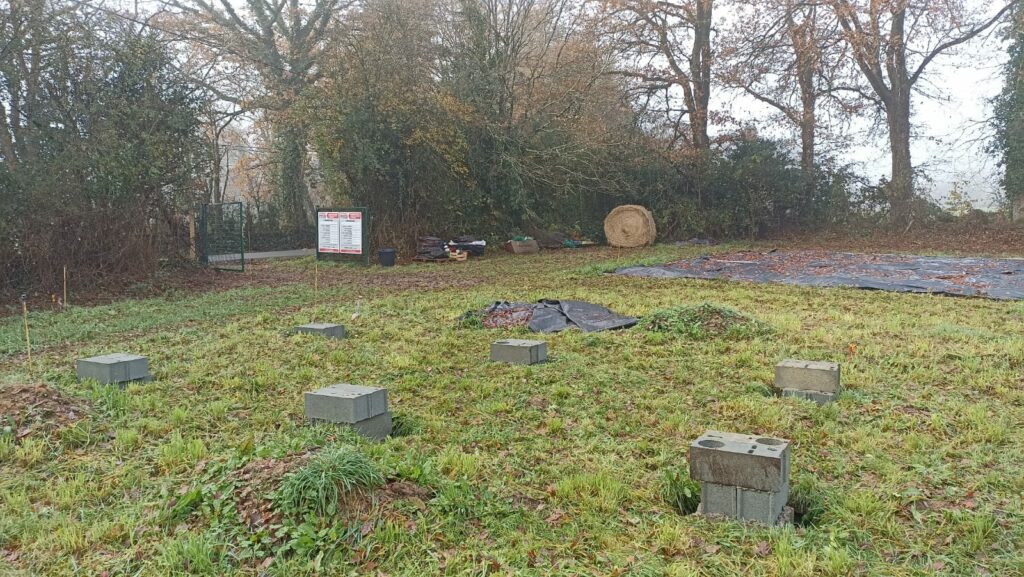Les pilotis pour le préfabriqué sont prêts, le raccordement à l’eau est fait, celui à l’électricité ne va pas tarder.