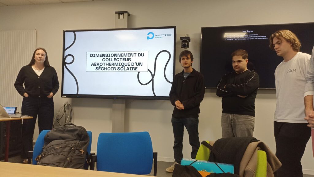 - visite à Polytech le 21 janvier pour la présentation à mi-parcours du projet du module solaire par les étudiants. C’était très technique et je n’ai pas tout compris aux calculs mais ils ont bien avancé et vont pouvoir passer à la partie construction.
